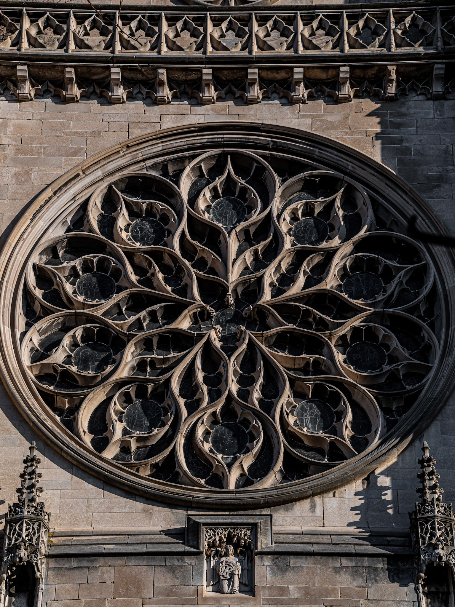 Holy Rosary Church in the Homewood neighborhood in Pittsburgh was built by Ralph Adams Cram in the Catalan Gothic style in 1930. This church has my favorite rose window in the Pittsburgh area, designed by Harry Wright Goodhue, the nephew of Bertram Goodhue. In 1948, the church was the largest in the Pittsburgh catholic diocese. In 1992, the population of the area had shrunk so much that the church had to merge with five other parishes in the area which formed the St Charles Lwanga parish. I haven’t been able to go inside, as the church is now just used as offices for the St. Charles Lwanga Catholic Parish. It was the first church I visited after becoming interested in architecture photography and is built by my favorite American church architect, so it’s quite a special place to me.